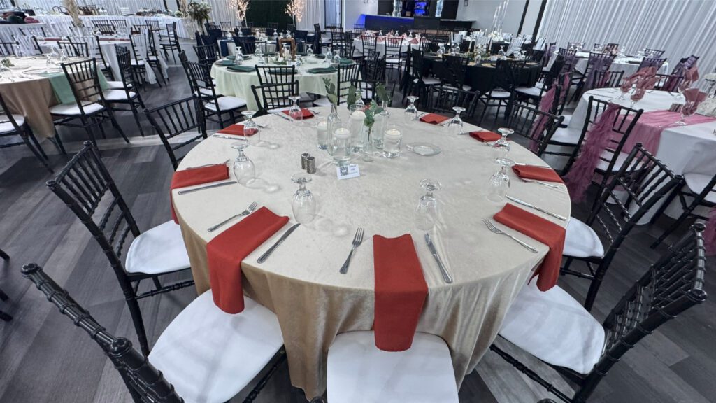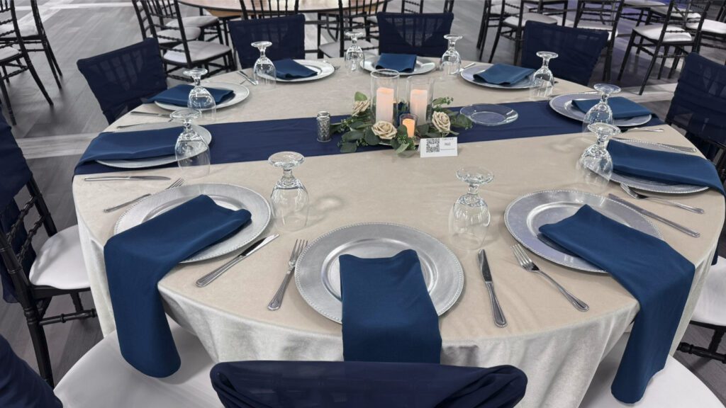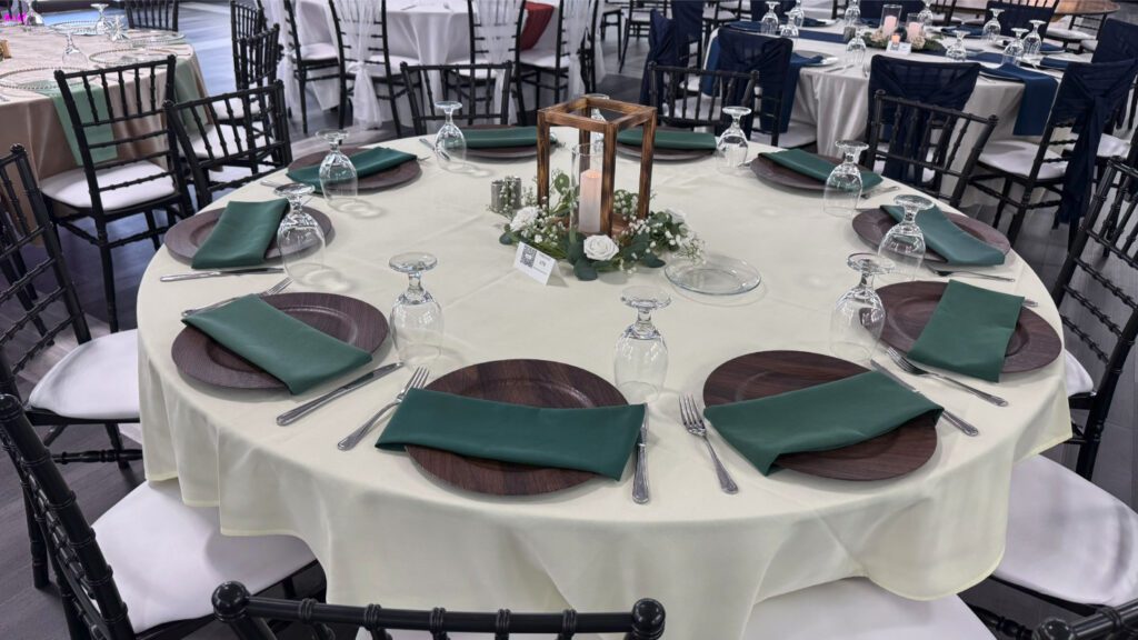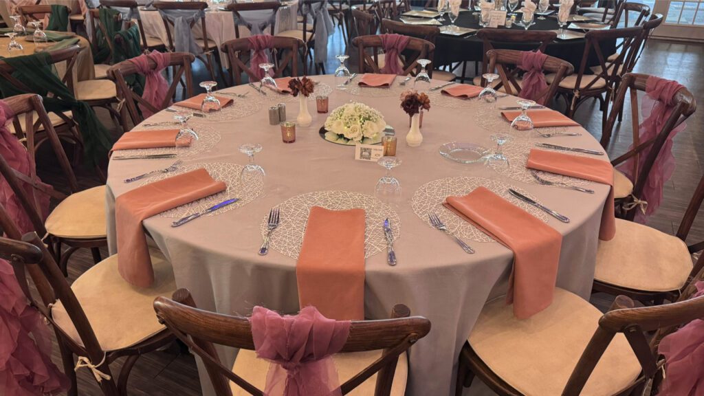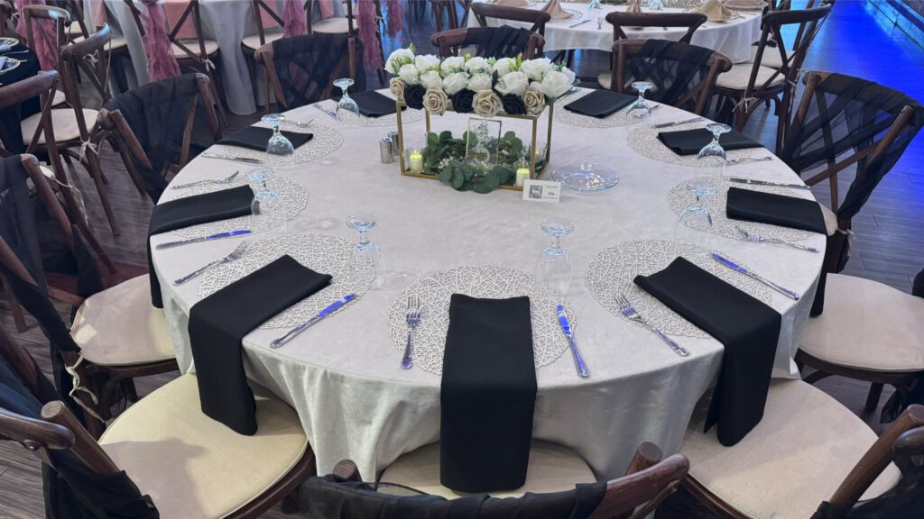 There are countless wedding table set up ideas to explore, whether you're drawn to a romantic, rustic, or modern aesthetic. Elegant floral centerpieces paired with gold-rimmed dinnerware create a timeless and sophisticated feel, while organic elements like wooden chargers and greenery runners add warmth and charm. Consider mixing textures, such as polyester napkins with velvet tablecloths, or incorporating wedding centerpiece ideas like alternating centerpieces, multiple tiered vases with LED candles, or statement floral arrangements for a truly stunning look.