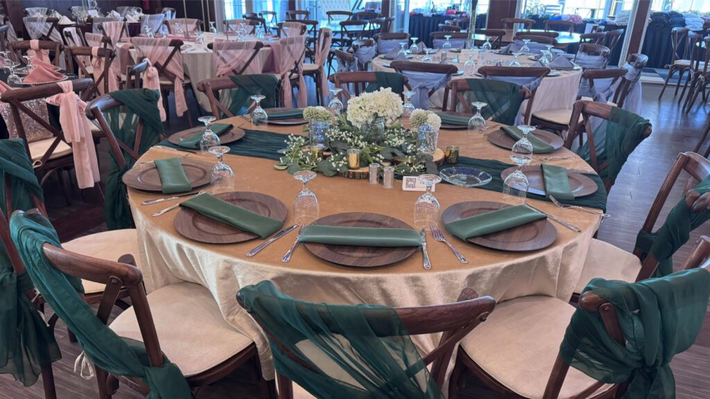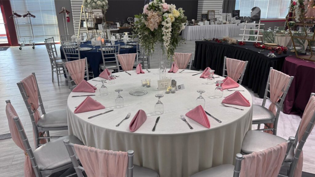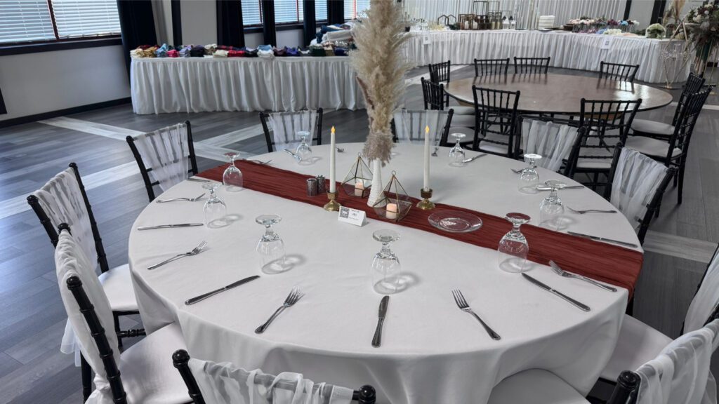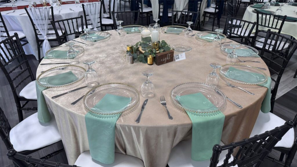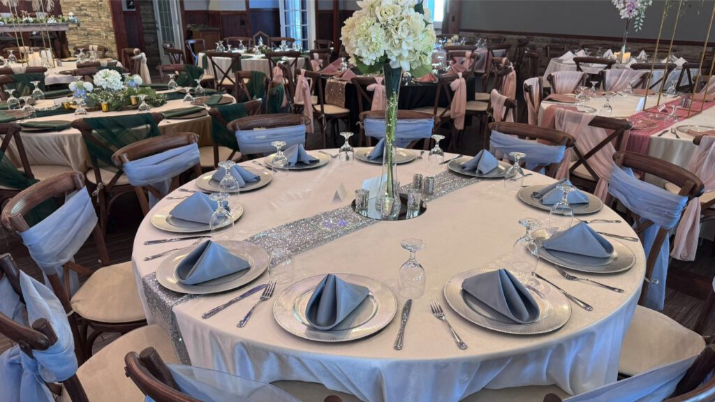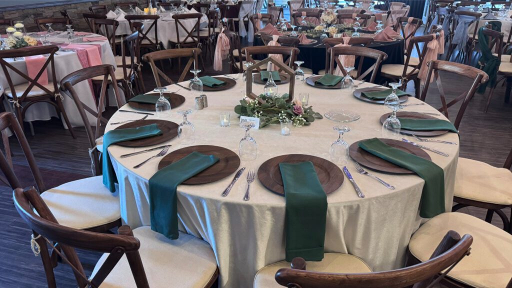 There are countless wedding table set up ideas to explore, whether you're drawn to a romantic, rustic, or modern aesthetic. Elegant floral centerpieces paired with gold-rimmed dinnerware create a timeless and sophisticated feel, while organic elements like wooden chargers and greenery runners add warmth and charm. Consider mixing textures, such as polyester napkins with velvet tablecloths, or incorporating wedding centerpiece ideas like alternating centerpieces, multiple tiered vases with LED candles, or statement floral arrangements for a truly stunning look.